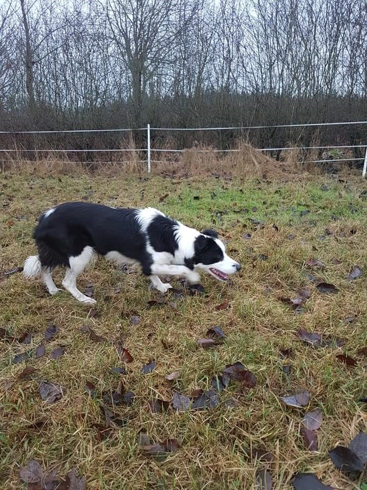 Rosie tränas i vallning, lydnad, spår samt canicross.