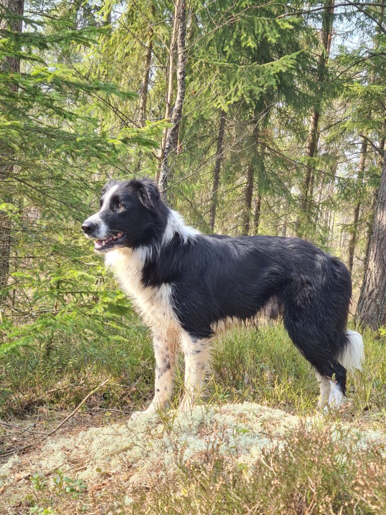 Rosie är en mycket glad, social, stabil och arbetsvillig hund. Hon gillar alla människor, stora som små, är inte rädd för skott/åska eller andra ljud, har inga rädslor. Rosie är mycket lättränad, hon är snabb och har mycket kamp och föremålsintresse. Hon har en tydlig av- och påknapp och har ingen stress. Hon älskar att träna oavsett om det gäller bruks, vallning, lydnad eller canicross, hon går in för allt med stor glädje och energi. Rosie vallar mjukt och fint, hon har en lugnande inverkan på djuren. Hon har naturligt avstånd och naturliga flanker, inga låsningar . Rosie har mycket god djurkänsla. Valparna förväntas bli mycket arbetsvilliga, sociala och med bra mentalitet.